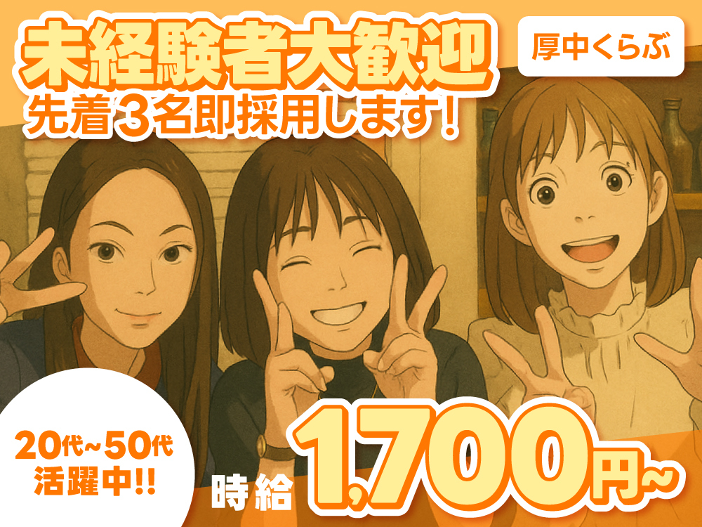 💗本厚木駅チカ!徒歩1分💗 完全新規オープン🎉 ✨オープニングメンバー大募集中✨ 新メンバーは’’総勢30名’’即採用!! 今なら、みんなが"同期スタート"! 《 派閥や上下関係ナシ 》でとっても安心🎶 未経験スタートでも丁寧にサポートするから、 「夜職が初めてで不安…」という方も 心配いりませんよ(⑅•ᴗ•⑅)♡ 面接ではスキルよりも 「話してみていい子かどうか」を重視! 経験よりもあなたの “やる気”や“雰囲気”を大切にします✨ 年齢や経歴問わず幅広く歓迎しています! ✅ 学生さん・Wワークさん ✅ お昼のお仕事とかけもちしたい方 ✅ 友達と一緒に応募したい方も大歓迎✨