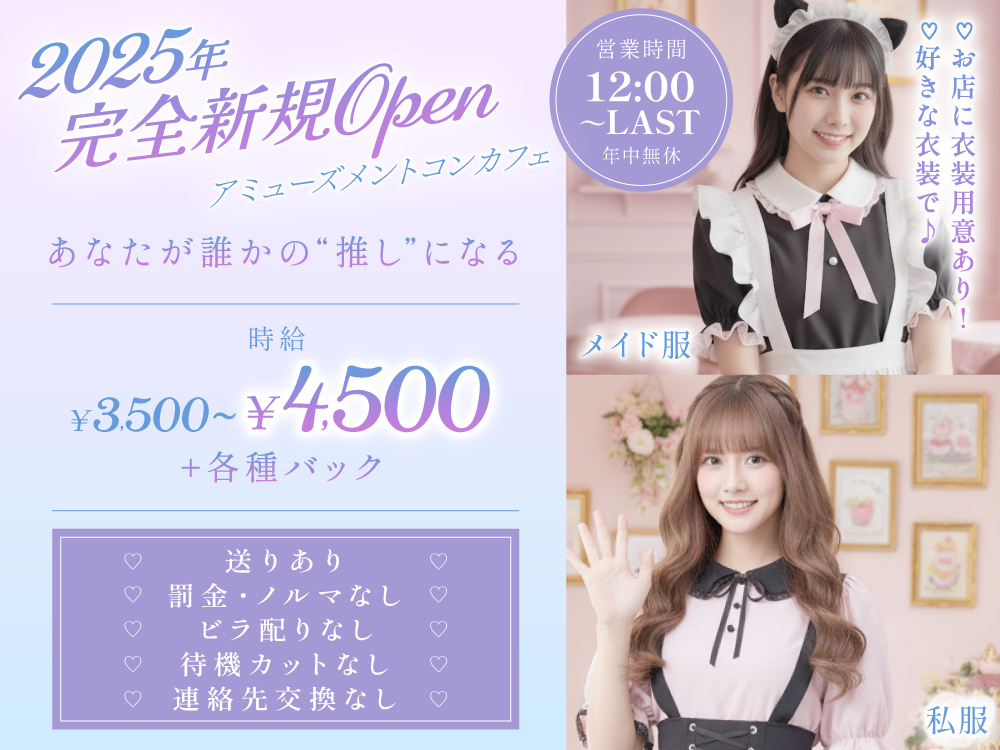 2025年8月NEW OPEN【 The Classザクラス】で、キャストを大募集👑 時給4,500円~5,000円保証で高額バックや全額日払いもあり、しっかり稼げます💸 ノルマ・罰金・同伴/アフター強制は一切なし🙅♀️ 身バレ防止対策も万全で安心です✨ シフトは完全自由制で終電までOK、無料の送りもあるからプライベート優先で働けます⏰ 無料ヘアメイク・レンタルドレス完備で手ぶら出勤👗 人柄採用の超アットホームな雰囲気で、友達同士の応募もOK👭💕 まずは体験入店やリモート面接で、気軽にお話しませんか? あなたからのご応募をお待ちしています😊