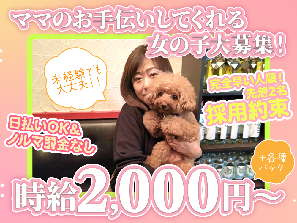 エリア随一の高待遇はこらんとら❣ しかも! 女性スタッフしかいないお店なので 安心して働けますよ❤ もちろんオーナーも女性です😌 時給6000円〜⚡ 全額日払いOKですよ❤ 今なら交通費支給! 超高待遇でとても働きやすい環境❣ こんな高時給にしているお店は 「こらんとら」だけ❣他のお店では 味わえない優越感です❤ スタッフ同士仲が良いので💖 みんなが働きやすく 新しく入る子も馴染みやすい環境作りをしてますよ❤ 未経験大歓迎で ナイトワーク初めての方も 安心してご応募くださいね✨ まずは、 見学だけ、面接だけ✨ お話だけ、体入だけ✨ なーんでもOKです❣ 少しでも気になったら応募してくださいね💖✨