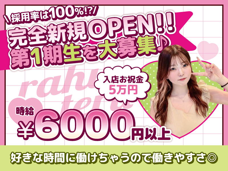 <エル>の求人ページをご覧頂きありがとうございます! 現在まだまだ女の子が少ないため 正真正銘の1期生募集となります♪ 『新規オープン店で働きたい!!』 『上下関係やグループ、派閥がないところが良い!!』 『女の子同士仲が良いお店で働きたい!!』 などなど希望の方にはピッタリです(*´▽`*)! 女の子が働きやすいように 環境や待遇を整えましたので お気軽にご連絡いただけると嬉しいです! < 人柄重視 >で採用中なので、 未経験者も積極的に採用しています◎ 今なら【先着20名】は面接合格率100%?なので ご応募お待ちしております!