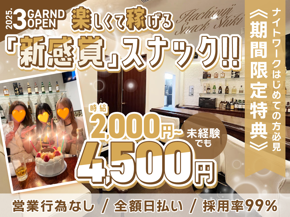 ✨各種高額バック付き ✨未経験者さん大歓迎 ✨経験者さん優遇 ✨Wワーク、学生、OL、主婦、フリーター大歓迎 ✨完全フリーシフト制 ✨週1日、1日3h〜OK ✨終電上がり、遅番OK ✨お友達同士の応募大歓迎 ✨お酒飲めなくてもOK ✨ノルマ無し ✨髪型、髪色、ネイル、ピアス自由 ✨履歴書不要 ✨即日体入OK ✨