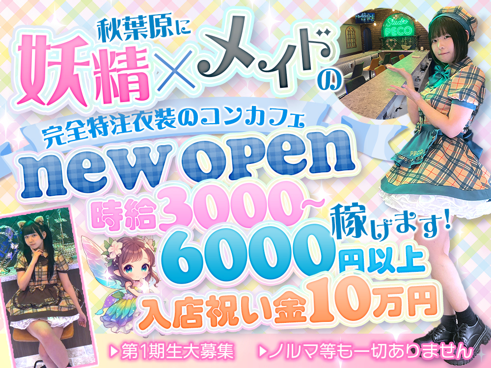 。.୨୧⌒⌒⌒⌒⌒⌒⌒⌒⌒⌒⌒⌒୨୧.。 妖精×メイドコンセプト - Studio PECO - 秋葉原駅から徒歩3分の好立地に ✨完全新規NEW OPEN✨ 。.୨୧⌒⌒⌒⌒⌒⌒⌒⌒⌒⌒⌒⌒୨୧.。 ❤未経験さんも安心スタート❤ あたたかい雰囲気が自慢です♪ ❤自由シフトでプライベート優先❤ 自分の生活に合わせて柔軟に働けます♪ ❤派閥なしで人間関係も良好❤ もちろんノルマや厳しいルールも一切なし! 。.୨୧⌒⌒⌒⌒⌒⌒⌒⌒⌒⌒⌒⌒୨୧.。 秋葉原で新しく始まるコンセプト空間で 一緒に楽しく働いてみませんか? ご応募を心よりお待ちしております❤