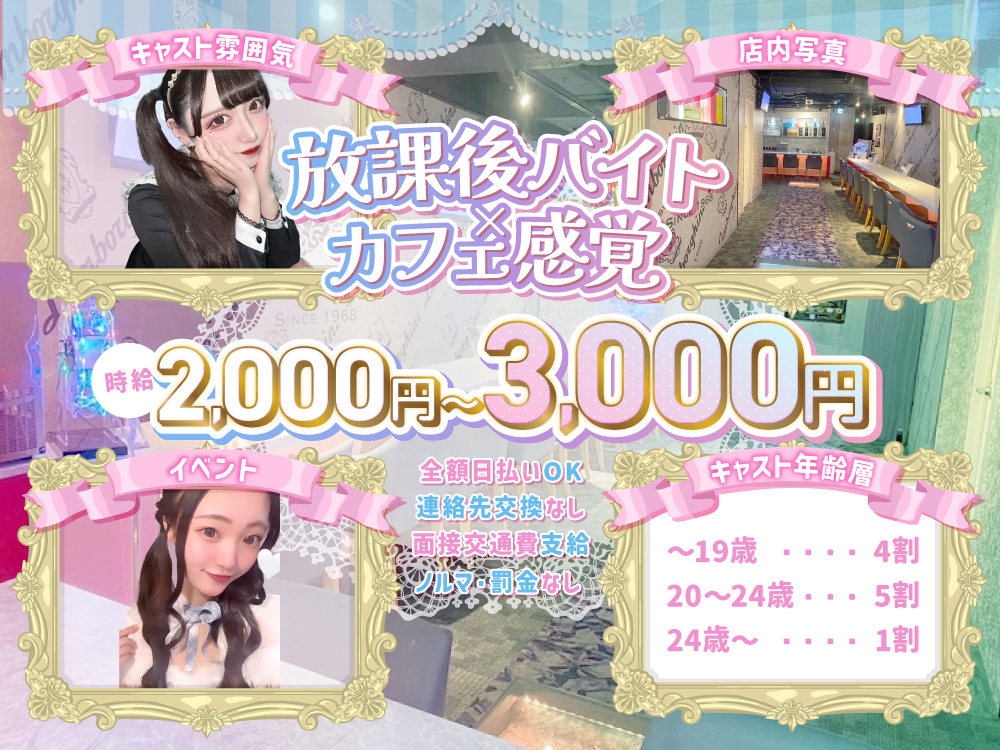 第1期オープニングキャストを大募集中で、今なら採用率99.9%✨入店祝い金や面接交通費支給の限定特典もありますよ💸!アトリエダーム監修の最高クオリティオリジナル衣装👗は必見で、ピアス・ネイル・髪型・髪色すべて自由🎀あなたらしさを活かして働けます🎵お仕事は楽しいおしゃべりがメインで、未経験でも時給6,000円以上が可能💰各種バックや昇給制度で頑張りもしっかり評価します⤴️全額日払いOKで、稼いだ分はすぐに手に入りますよ💡シフトは完全自由制🙌🏻昼の13時からオープンしているので、学生さんやWワークさんも両立しやすく、無料の送り🚗💨もあって終電後も安心安全です🍀