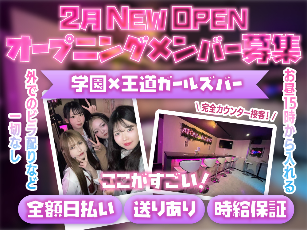⭐️時給2300~⭐️みんなが仲良く派閥がない❗⭐️お洒落な店内でお仕事❤⭐️女の子の働きやすさが1番大事❗⭐️ノルマ.ペナルティが絶対にない❗⭐️待機中の給料カット一切なし❗⭐️お友達と一緒に体入大歓迎⭐️未経験者大歓迎❗⭐️経験者優遇⭐️Wワーク、学生さん大歓迎❗⭐️何度でも体験入店ができる❗⭐️ソフトドリンクOK❗⭐️髪色、ピアス、アクセサリー制限なし⭐️完全自由シフト⭐️各種高額バックあります⭐️私服で働ける❗⭐️駅が近い❗⭐️週1~勤務大歓迎⭐️連絡先の交換の強制一切なし⭐️終電上がりOK⭐️