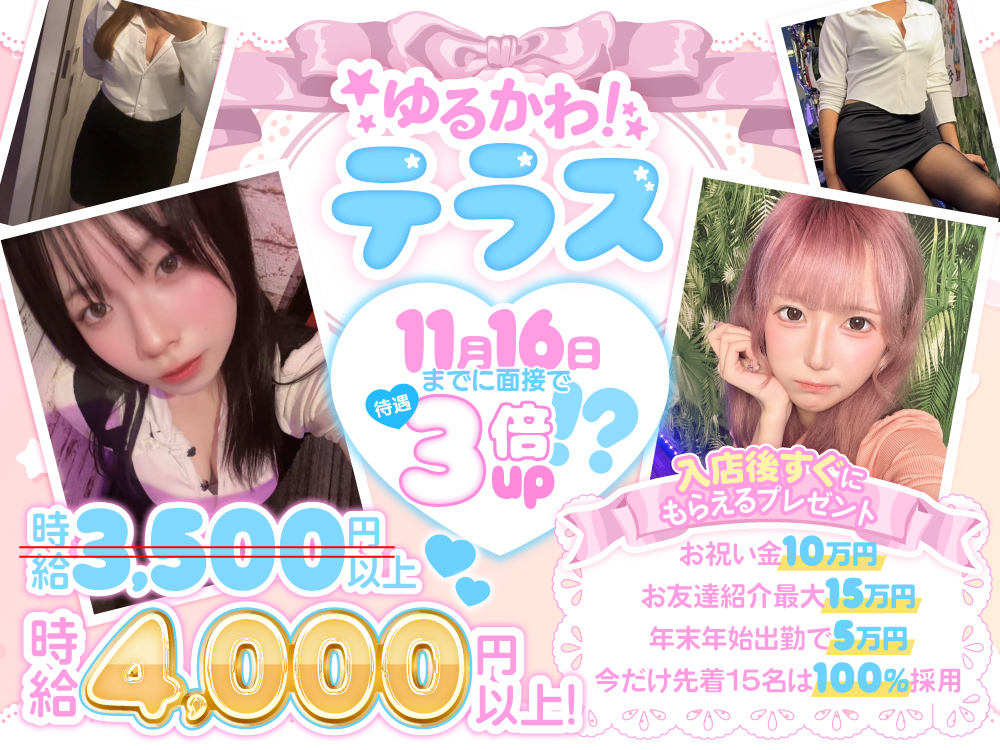 💛カワイイ衣装が選び放題の「FINE+」✨ ノルマは一切なしで、未経験者でも時給2,500円スタート💸 日払いOKでモチベもUP⤴⤴ 週1・3h~の自由シフト制で、プライベートを大切にしながら楽しく働けます🎈メイド服やチアリーダー風など、自分好みのスタイルで働けるチャンスも✨ さらに、送りサービス完備で安心安全🚗💨 お話好きさん、ゲーム・アニメ好きさんも大歓迎!あなたの趣味を活かして、新しい仲間と楽しく働ける環境です🌈 体験入店も随時受付中なので、気軽にお問い合わせを💓 お友達との応募やWEB面接もOKなので、ぜひこの機会にチャレンジしてみてくださいね💌
