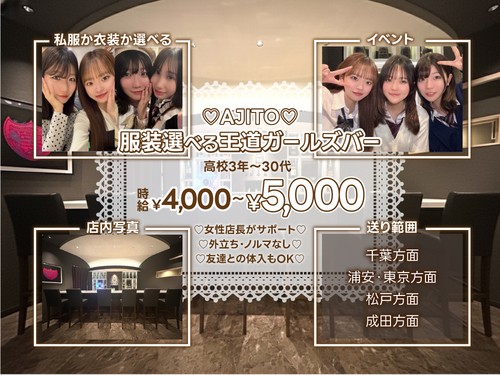 完全新規オープンしたばかりの【アルタイル】様❤️🔥ナイト未経験のほとんどが『ここにしてよかった!』と絶賛✨小箱でお店全体が見渡せる環境で、カウンター越しの接客で安心🌈さらに連絡先の交換も自由で強要は一切ないので、プライベートの確保できますよ🙆♀️お酒が苦手な子は無理に飲まなくてOK!ワイワイ系の人もあまりいないので落ち着いた空間でノンアルコール働けるとの子!さらに、極めつけは規定なしの完全私服勤務✨学校や仕事帰りでも気軽に働けちゃうんです🧸🫧採用基準は"容姿"ではなく、【人柄】とのこと。真面目に楽しく頑張れる方を大募集!女の子を第一に考えてくれる店長さんのもとで働きませんか?