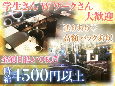 《20代〜40代》の女の子達積極採用中❗️❗️ ナイトワークデビューさん大歓迎⭐️ 働きやすさ抜群の"超"優良店❤️ そんな当店の高待遇はこちらです〜◉日払いOK❗️ ◉送りあり ◉ドレスレンタルあり ◉ヘアメイク完備 ◉個人ロッカーあり ◉お酒が飲めなくてもOK ◉カラオケが歌えなくてもOK ◉ノルマやペナルティーは一切なし ◉髪型、髪色、ネイル、アクセサリー、ピアス、タトゥー、自由です ◉完全自由シフト制であなたの都合のいい時間に出勤してください ◉未経験さん大歓迎 ◉Wワークさん