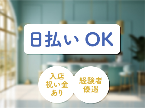 ❤️未経験の方も大歓迎! ⭐️経験者の方は優遇あり! ❤️学生・OL・フリーター・Wワークの方大歓迎! ⭐️お酒が飲めなくてもOK! ❤️お友達同士のご応募も大歓迎! ⭐️全額日払いOK ❤️終電あがりOK ⭐️3h以内の勤務OK ❤️髪型、髪色、ネイル、ピアス自由 ⭐️履歴書不要 ❤️完全フリーシフト制 ⭐️即日体入OK