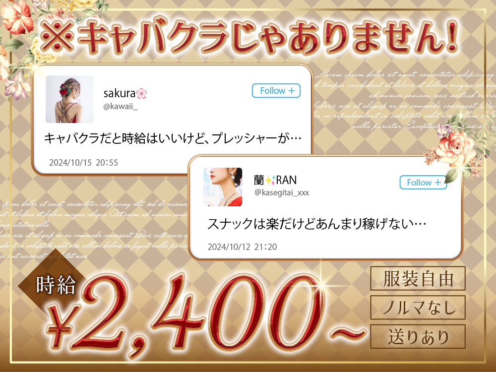 岩槻駅徒歩7分「Success 〜サクセス〜」スナックとキャバクラのいいとこどりのお店🤍地域密着型の落ち着いたクラブで働きませんか?✨お仕事内容は、お客様と楽しくおしゃべりしたり、ドリンクを作るだけ🎶未経験でも安心して働けます😊シフトも超自由で、週1日からOK📅🚃送りありなので安心して帰れます🚙今なら採用率が大幅アップ中⚡学生さんやWワークの方、子育てママも大歓迎です💖時給2,400円~で日払いOK💸!気軽にご応募ください♪