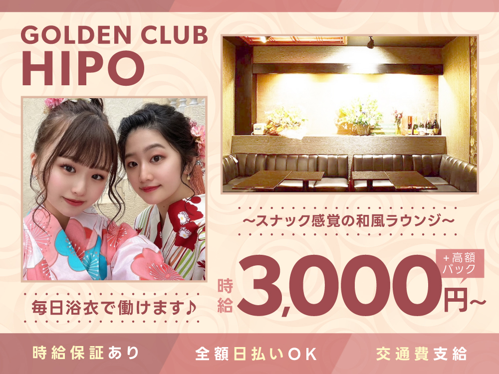横浜駅から徒歩4分のラウンジ「HIPO~ヒポ~」は、毎日浴衣で働ける和風テイストのスナック感覚のお店です👘✨気さくなママや紳士的な40~50代の会社員中心のお客様が集まるアットホームな環境なので、初心者さんも安心してスタートできます🎶自由シフト制で週1~、1日1時間勤務もOK!お酒が苦手でもソフトドリンクに「ジュースバック」がつくから安心💖時給3,000円以上&日払いOKなど豪華待遇も魅力的✨和の雰囲気が好きな方、ぜひご応募を🌼
