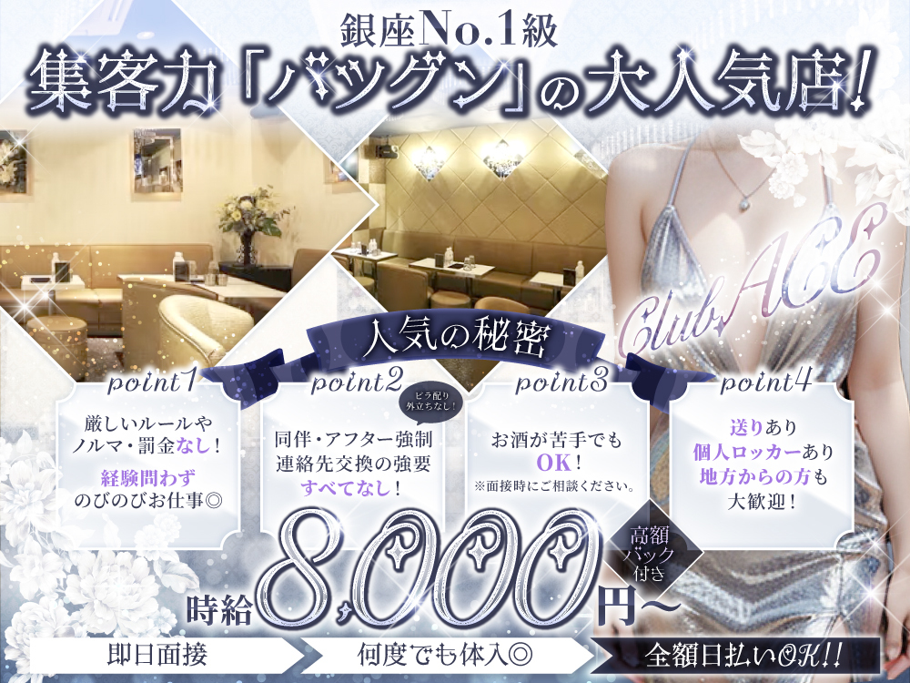 🌟新橋&銀座からアクセス抜群❕経験不問で時給5,000円~スタートをお約束 !ノルマや罰金ナシでストレスフリーな環境です✨週1/3h~の自由シフトでプライベートも充実💕露出控えめで上品なドレスは無料レンタル可能👗🌈派手髪やタトゥーも自由で働きやすさバツグン◎ヘアメイクもあるのでラクラク出勤&きれいに大変身💃✨送り完備で終電や夜道も安心✨お酒が苦手な方も安心のノンアルOK🚗💖体験入店随時受付中で友達同士の応募も大歓迎!あなたのご応募を心よりお待ちしています💓