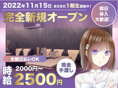 ✨2022年11月15日完全新規オープン✨ ✨オープニングスタッフ大募集✨ ✨採用強化中✨ ✨採用率ほぼ100%✨ ✨時給2000円~2500円✨ ✨全額日払いOK✨ ✨各種高額バックあり✨ ✨送りあり✨ ✨上下関係・派閥なし✨ ✨ノルマなし✨ ✨ぺナルディなし✨ 学生さん、Wワークさんどんな方でも大歓迎⭐️⭐️お友達と応募もOK!!!何度でも体験入店できます♡ご応募お待ちしています♬