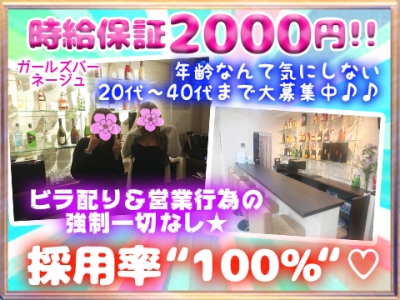 《女性店長(ママ)が運営する高待遇BARがオープンです♪》20代〜40代まで活躍中です❗️ 優しいママが『年齢なんて気にしない❗️』宣言中⭐️ 未経験者さんでも経験者さんでも大歓迎♬ 『時給保証2000円』 ⭐️待遇⭐️ 『週1日3h〜』大歓迎です❗️ ◎スタッフ急募中❗️ ◎タトゥー・ピアス自由❗️ ◎完全自由シフト ◎ノルマ無し❗️ ◎制服も有ります❗️ ◎髪型自由・ネイル・アクセ自由❗️ ◎短時間勤務OK・WワークOK❗️ ◎時給プラスアルファで稼げるお仕事❗️ ◎未経験スタートも9割以上❗️ ◎学