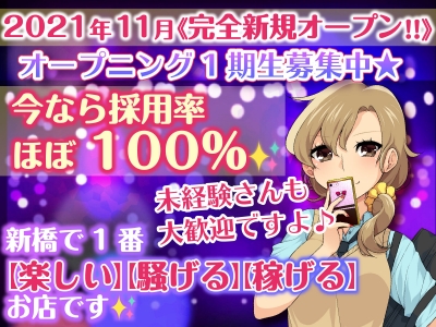❤️2021年11月完全新規オープン❤️《オープニング1期生》募集中♪体入時給4000円以上お約束♡本入店後も時給4000円以上をお約束♡《1期生》なので同期ばかり♪めんどくさい上下関係や派閥なし♪《女の子ファースト》を目指します!!無料の送迎あり⭐️全額日払い可能⭐️今なら【ほぼ採用】✨ノルマやペナルティなし⭐︎引かれ物一切なし⭐️無料のレンタル衣装あり✨完全自由シフト制だから、自分で決められる!!週1日〜OK!!未経験者さん、経験者さん問わず積極採用中♡