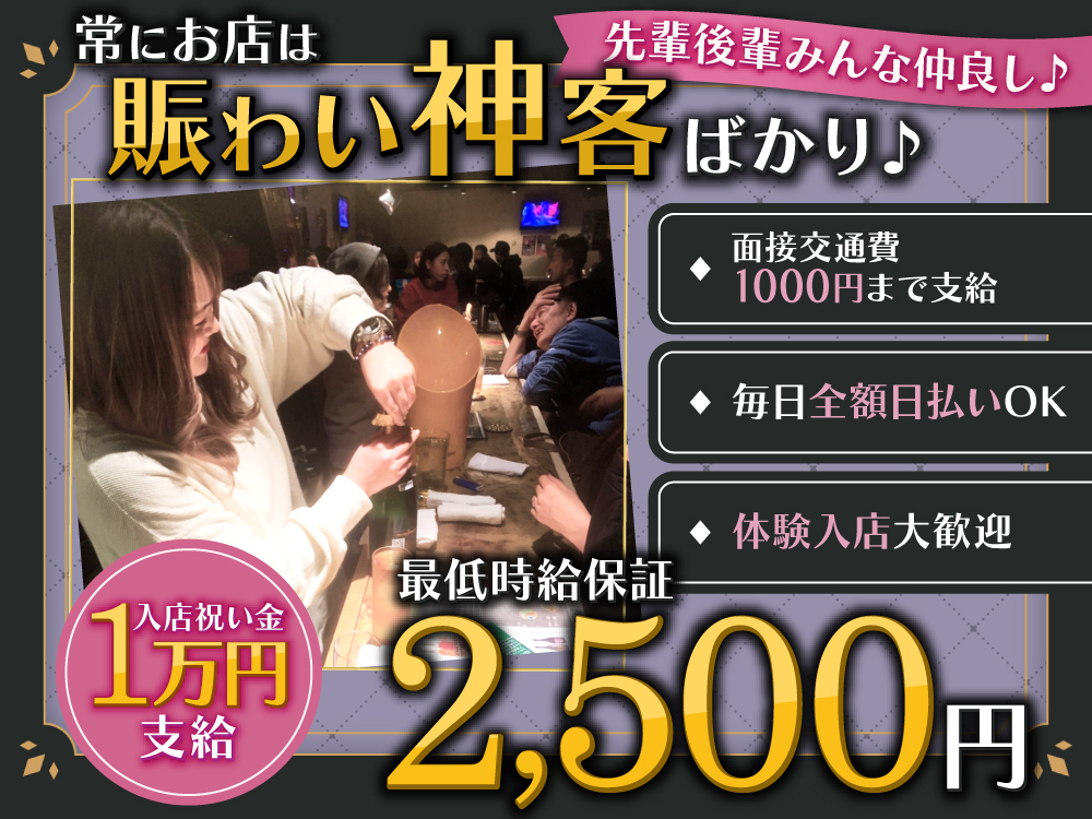 【時給】2000円〜3000円 経験未経験問わず大歓迎です❗️頼りになる男性店長と、優しい女性店長がいるので働きやすさ抜群です❗️ アットホ〜ムな雰囲気で働きやすさはエリアNo.1♡✨ 当店のおすすめPOINTはこちら▶︎▶︎⭐️全額日払いOK ⭐️高額ドリンクバックあり ⭐️売上げバック ⭐️ボーナスあり ⭐️送りあり ⭐️制服レンタルあり ⭐️髪型・髪色・ネイル・ピアス自由 ⭐️親バレ・彼バレ対策バッチリ ⭐️待機カットなし ⭐️お友達同士の面接&勤務OK ⭐️ソフトドリンクOK