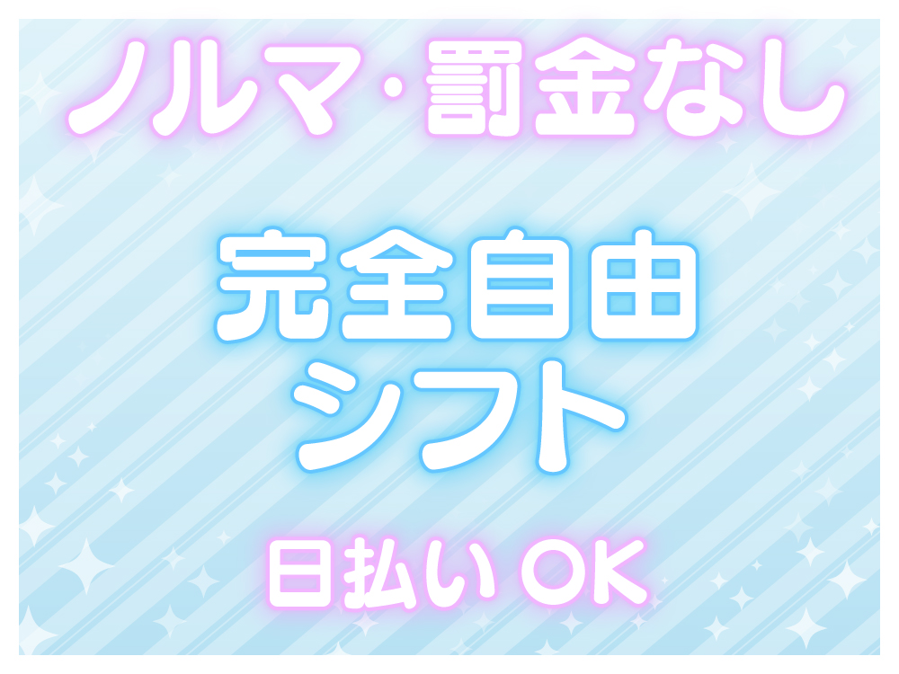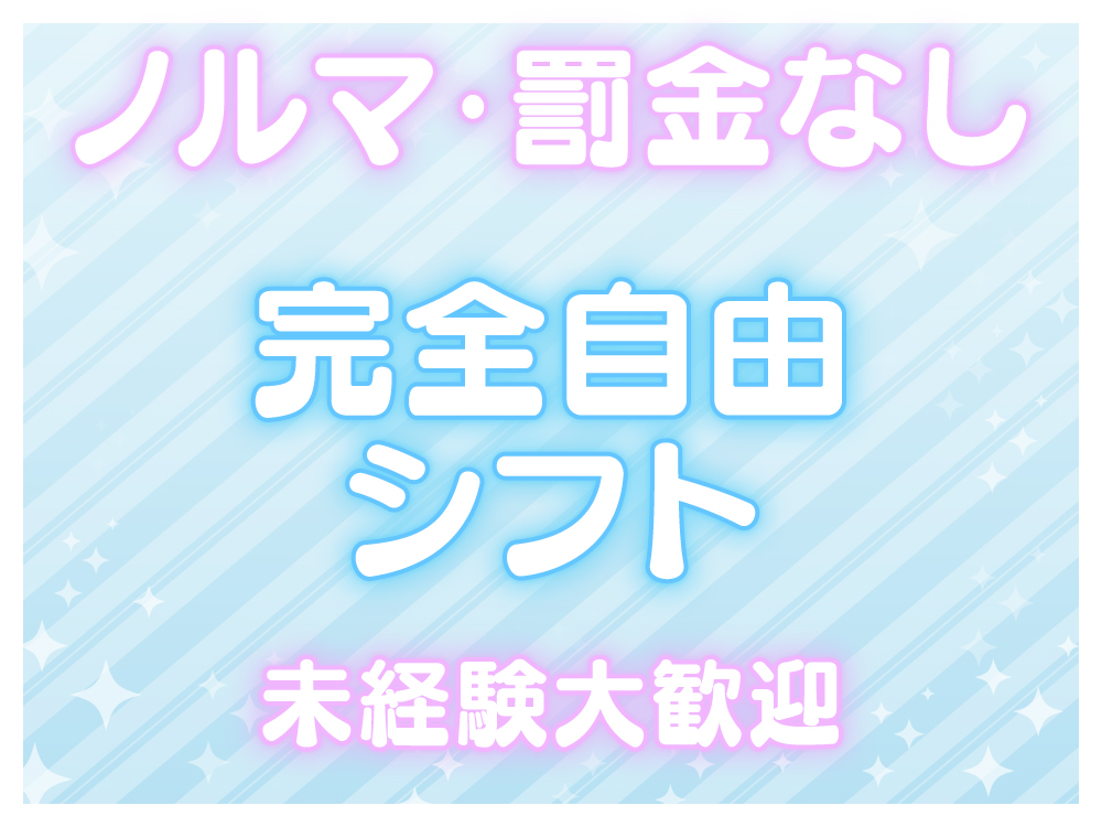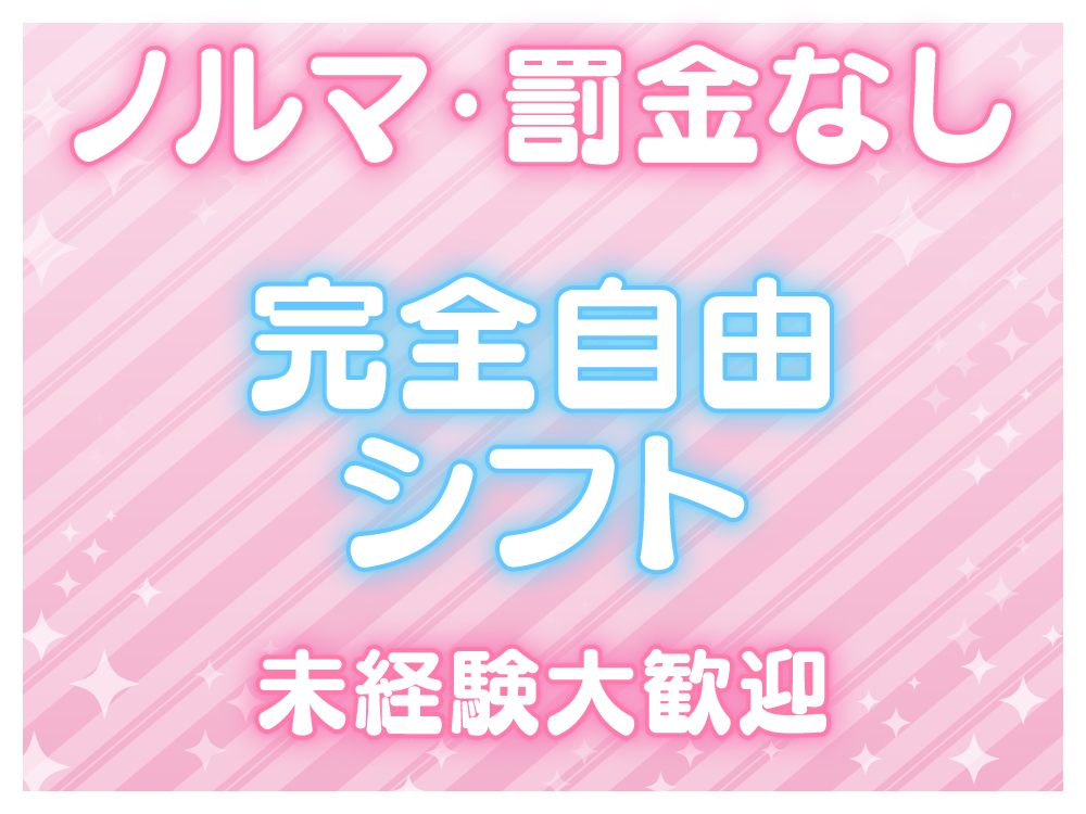 エリアTOPクラスの高時給&高待遇のお店です✨ ✨各種高額バック付き ✨未経験者さん大歓迎 ✨経験者さん優遇 ✨Wワーク、学生、OL、主婦、フリーター大歓迎 ✨完全フリーシフト制 ✨週1日、1日3h〜OK ✨終電上がり、遅番OK ✨お友達同士の応募大歓迎 ✨お酒飲めなくてもOK ✨ノルマ無し ✨髪型、髪色、ネイル、ピアス自由 ✨履歴書不要 ✨即日体入OK ✨