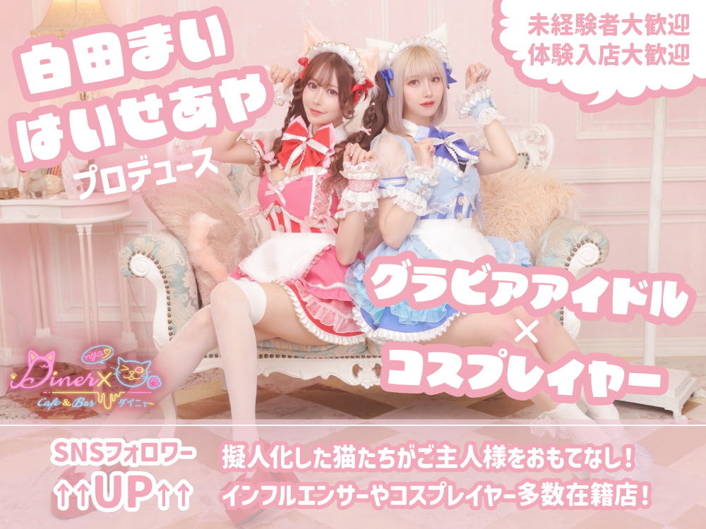 💖新宿に新規オープンのコンカフェ「Diner×nya-だいにゃー」💖猫の擬人化コンセプトでおもてなしする特別な空間を体験しませんか?🐾 未経験者大歓迎で、プロデュースは有名コスプレイヤーの白田まいさんが担当!✨ 高待遇として、時給1300円以上、日払いOK、ノルマ・罰金なしで、安心の女性スタッフ常駐👧週1から自由シフトで、終電後の送りも無料!🚗 今なら入店祝い金もあり✨気軽に体験入店からスタートしてみては?🌟 詳細と応募は、新宿駅東口から徒歩10分のDiner×nya-だいにゃーへ!