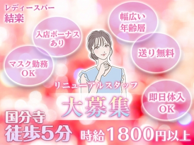 ✨国分寺駅徒歩2分の「ガールズバー No.9」で新メンバー大募集🌟高時給3,000円スタートで、全額日払いOK💰自由シフトで週1から勤務可能📅ドレス&ヒールレンタル無料、髪色・アクセ自由でおしゃれも楽しめる👗💄お仕事はフリートークとドリンク提供で簡単🍸ノルマや罰金なしで働きやすさ抜群✌️VIP席ありの高級感あふれる空間で、安心の大手グループ運営🏢終電後は無料送りありで安心帰宅🚗💨未経験者歓迎、友達との応募もOK👯♀️この機会に一緒に楽しく稼ぎましょう💕