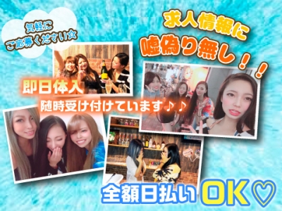 「学生さん」「フリーターさん」「Wワークさん」「ママさん」などなど どんな方でも大歓迎◎ 通勤交通費支給あり◎ 日払いOKだから安心❤️ 給料もドンドンあがっていきます✨ 髪型・髪色は自由✨ ネイル・ピアス・アクセもご自由に! お酒が飲めなくても大丈夫です✨ 未経験者さん大歓迎❤️ 完全カウンター越しの接客で安心✨ 完全自由シフト⭐️ ストレス無しの職場✨ 終電上がりOK❤️ もちろん経験者さんも大歓迎⭕️ 優遇します★ 体験入店何度でもできます✨ ノルマ、罰金、ペナルティ一切なし❤️