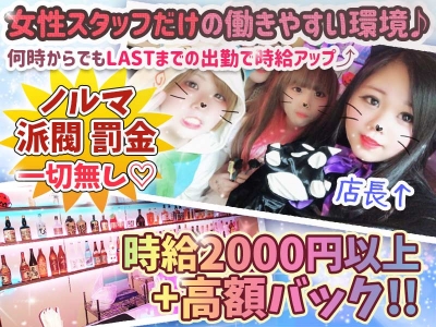 『女の子の為』×『女の子だけのガールズバー』です❗️❗️ 給料からの天引きは一切無し❤️ 上下関係や人間付き合いに疲れた女の子たは是非ご応募を⭐️ そんな当店お待遇はこちらです→ ・1000%カウンター越しの接客❗️ ・週末と深夜帯時給UP⤴︎ ・同伴、アフター無し❗️ ・全額日払いOK❗️ ・高額バック有り❗️ ・髪色、髪型、ネイル完全自由❗️ ・寮完備❗️ ・飲めなくてもOK❗️ ・ノルマやペナルティーはい一切無し❗️ ・完全自由シフト制❗️ ・友達とのご応募も大歓迎❗️