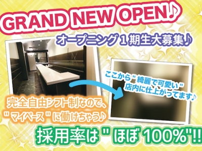⭐️2022年2月新規オープン⭐️1期生大募集中⭐️未経験大歓迎 ⭐️経験者優遇⭐️広々とした店内⭐️私服勤務OK⭐️ ⭐️送り有り⭐️週1~3h~勤務OK⭐️日払いOK ⭐️各種バックあり⭐️ピアス・タトゥーOK ⭐️Wワーク大歓迎⭐️学生さん大歓迎⭐️フリーターさん大歓迎 ⭐️カウンター越しの接客⭐️終電上がりOK ⭐️派閥等一切なし⭐️ゆるーく働ける