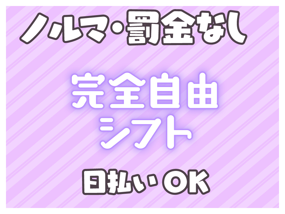 ❤️未経験の方も大歓迎! ⭐️経験者の方は優遇あり! ❤️学生・OL・フリーター・Wワークの方大歓迎! ⭐️お酒が飲めなくてもOK! ❤️お友達同士のご応募も大歓迎! ⭐️全額日払いOK ❤️終電あがりOK ⭐️3h以内の勤務OK ❤️髪型、髪色、ネイル、ピアス自由 ⭐️履歴書不要 ❤️完全フリーシフト制 ⭐️即日体入OK