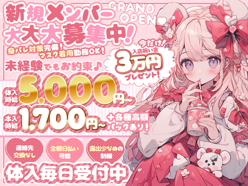 ❤️未経験の方も大歓迎! ⭐️経験者の方は優遇あり! ❤️学生・OL・フリーター・Wワークの方大歓迎! ⭐️お酒が飲めなくてもOK! ❤️お友達同士のご応募も大歓迎! ⭐️全額日払いOK ❤️終電あがりOK ⭐️3h以内の勤務OK ❤️髪型、髪色、ネイル、ピアス自由 ⭐️履歴書不要 ❤️完全フリーシフト制 ⭐️即日体入OK