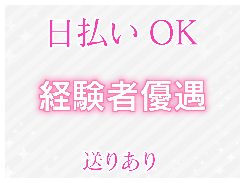 ❤️未経験の方も大歓迎! ⭐️経験者の方は優遇あり! ❤️学生・OL・フリーター・Wワークの方大歓迎! ⭐️お酒が飲めなくてもOK! ❤️お友達同士のご応募も大歓迎! ⭐️全額日払いOK ❤️終電あがりOK ⭐️3h以内の勤務OK ❤️髪型、髪色、ネイル、ピアス自由 ⭐️履歴書不要 ❤️完全フリーシフト制 ⭐️即日体入OK
