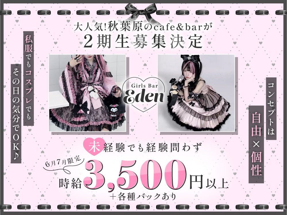 秋葉原の🌟最新求人情報🌟ガールズバー EDEN🌈2023年3月新規オープン🌈未経験者・経験者さん大歓迎🎉業界トップ時給3,500円以上💰日払いOK👍完全自由シフト制📅ノルマ・ペナルティなし🚫ノンアルコール営業もあり🍹採用率99.9%💪私服OK👗無料レンタル衣装🎀自分らしく働けて稼げる環境✨一緒にお店を盛り上げましょう🌟お問い合わせ・ご応募はお気軽に💌EDENで素敵な時間を過ごしましょう💖
