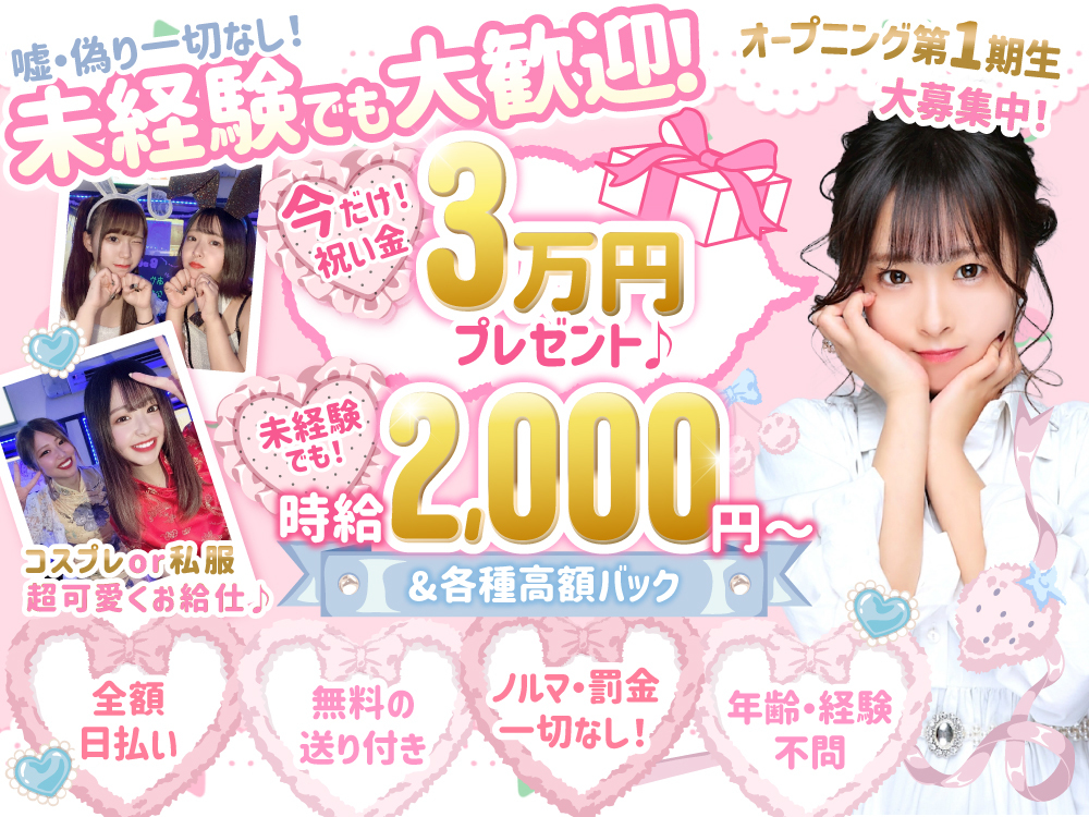楽しいフリートークとドリンク作成がお仕事🌸 時給は2,200円スタートで、夜遅くまで働けばさらにUP✨ さらに各種高額バック&入店祝い金あり🎉、学生もフリーターも大歓迎👩🎓💼 ドレスレンタルあり、99.9%採用で、タトゥー・髪型・アクセ自由!週1日、短時間からOK、遅出出勤も可能です⏰ シフト完全自由制で友達との応募も大歓迎👭 日払いO!未経験者歓迎、経験者優遇で新しいお仕事を見つけよう✨