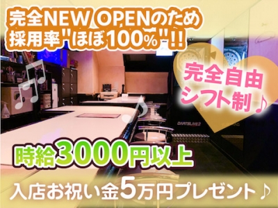 【✨第一期生大募集中✨】♡今なら入店祝い金3万円!♡完全リニューアルオープン♡エリアトップクラスの時給3000円~♡各種高額バック有り♡ガールズバーには珍しい『送り』有り♡店服完備でダル着で楽々通勤退勤♡体入時の面接交通費全額支給♡見渡しのいい広々とした店内♡完全自由シフト制♡全額日払い可能♡未経験者大歓迎♡経験者優遇♡感染症対策バッチリ♡