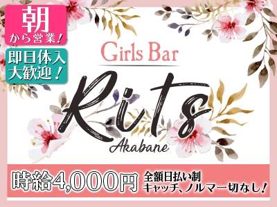 超気軽ナイト感ゼロの【Girls Bar Rits−リッツ− 】が現在、女の子を大募集中!ガールズバーなのにオープンは朝の10時なんです!だから学校終わりの学生さんなどでもサクッと働けちゃいます♪もちろん、お昼のお仕事があるOLさんも大歓迎ですよ♪時給は嬉しい4000円スタート!朝からガッツリ入ればじゃんじゃん稼げちゃいますよ♪お給料の全額日払いが可能ですので、毎日が給料日のようなものです!金欠のお悩みとはこれでおさらばしちゃいましょう!