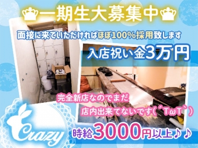 《未経験者さん大歓迎》完全新規オープンにつき、一期生大募集中です❗️ウイルス対策万全なので安心して働くことができます❤️時給はなんと3000円以上♪上下関係なども無いので、ご応募お早めに❗️❗️◇全額日払いOK◇昇給随時◇各種高額バックあり◇ノルマ・罰金なし◇私服OK(服装自由)◇髪型・髪色・ピアス・ネイル自由◇新型コロナ対策バッチリ♪◇即日面接体験OK◇土日も働ける◇給料の天引きもありません◇駅チカの好立地◇今だけの激レア求人◇採用率大幅アップ中◇