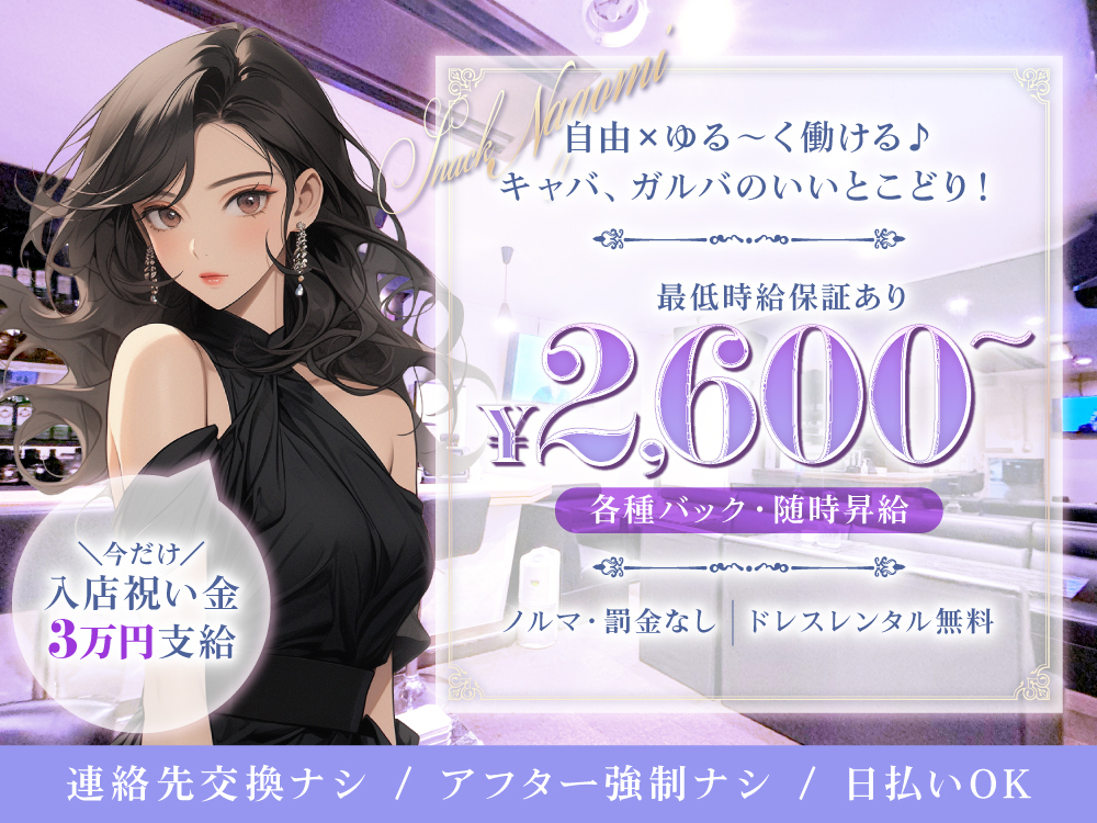ナイトワークデビューにぴったりのスナックYOUでは、未経験者大歓迎で20代~30代が活躍中です🌸居心地の良さが魅力で、同年代が多くサポートし合える環境です😊ノルマ・罰金、連絡先交換強制、同伴・アフター強制が一切なく、ストレスフリーで働けます✨髪色・ネイル・タトゥーも自由で、週1日~/2時間からOK、終電上がりや遅出出勤も対応します📅全額日払いOKで急な出費も安心👛未経験でも時給1,500円以上からスタートでき、昇給も随時あります⤴⤴ぜひご応募ください🌈