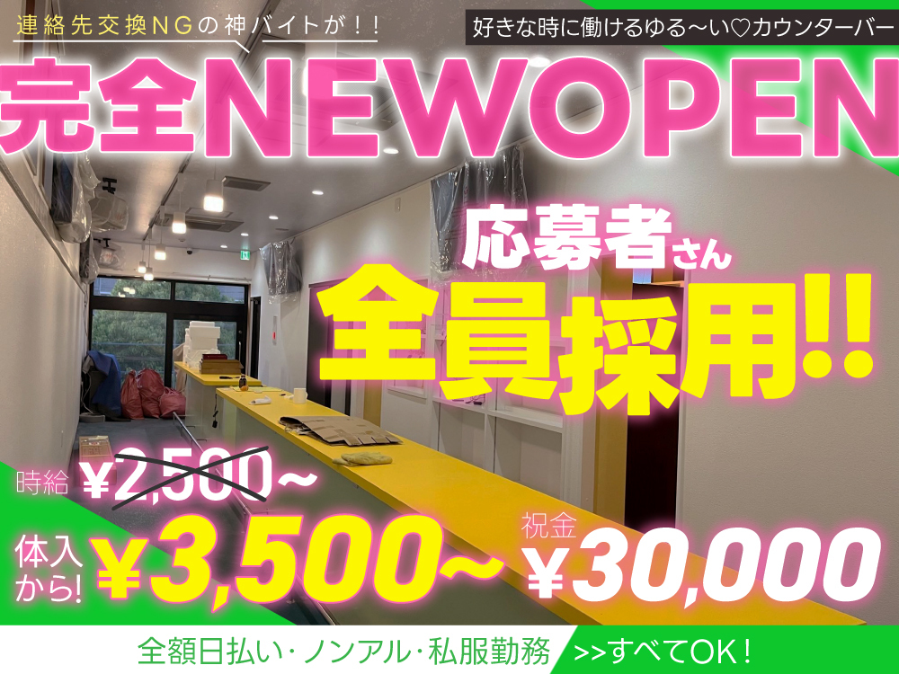 TGB担当者がイチ押しする店舗が【🎊2023年6月13日完全新規オープン❗❗】初心者さん・未経験者さん超・超・超募集💕『せーので』スタートするので上下関係なんて概念ありません🎀入店祝い金2万円&紹介金1万円🎁今なら!採用率《200%》容姿・学歴・経験・能力etc…な~~にも必要なし🍬激ゆる~な環境なので『自由に楽しんでのびのび』カフェ感覚で過ごしてくれるだけでOK❗居酒屋・飲食店よりラクなお仕事🍭正真正銘の第一期生として一緒に【🥇JOKER~ジョーカー~🏆】を盛り上げませんか⁉⁉