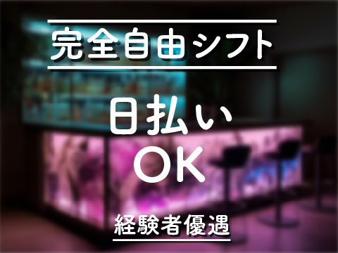 ❤️未経験の方も大歓迎! ⭐️経験者の方は優遇あり! ❤️学生・OL・フリーター・Wワークの方大歓迎! ⭐️お酒が飲めなくてもOK! ❤️お友達同士のご応募も大歓迎! ⭐️全額日払いOK ❤️終電あがりOK ⭐️3h以内の勤務OK ❤️髪型、髪色、ネイル、ピアス自由 ⭐️履歴書不要 ❤️完全フリーシフト制 ⭐️即日体入OK