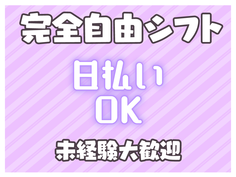 ❤️未経験の方も大歓迎! ⭐️経験者の方は優遇あり! ❤️学生・OL・フリーター・Wワークの方大歓迎! ⭐️お酒が飲めなくてもOK! ❤️お友達同士のご応募も大歓迎! ⭐️全額日払いOK ❤️終電あがりOK ⭐️3h以内の勤務OK ❤️髪型、髪色、ネイル、ピアス自由 ⭐️履歴書不要 ❤️完全フリーシフト制 ⭐️即日体入OK