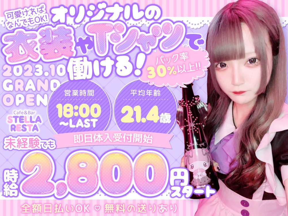 未経験者さんも経験者さんも大歓迎💓昇給無限🚀好きな日に働ける⭐完全自由シフト制🎉全額日払いOK💰お酒飲めなくてもOK🍹🌟オシャレな店内で楽しく働こう💕履歴書不要で手ぶら面接🎀体入いつでもOKで即日勤務にも対応できます💪ノルマやペナルティなど女の子のマイナスになることは一切なし⭕