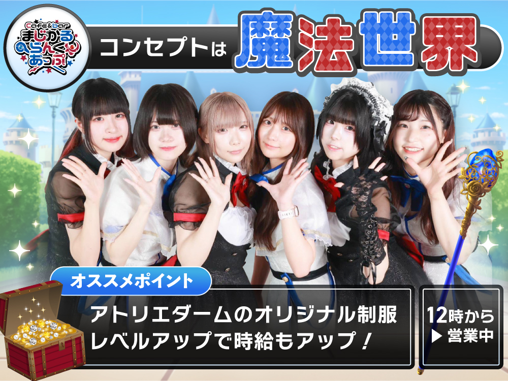 🌈新宿の人気店「まじかるらんくあっぷ」が第2期生を大・大・大募集中🎉未経験でも稼げる安心システムで、どんどん昇給🌟可愛すぎる衣装は無料レンタルでその日の気分で選べる💓レアな美容特典満載で、お得感いっぱい✨ノンアルでも稼げるシステムが魅力💕交通費全額支給🚃送りあり🚗安心の待遇で未経験者も安心🍭完全自由シフトで学校や他の仕事との両立もバッチリ💪体験入店も気軽にどうぞ!あなたのご応募を心よりお待ちしています💖