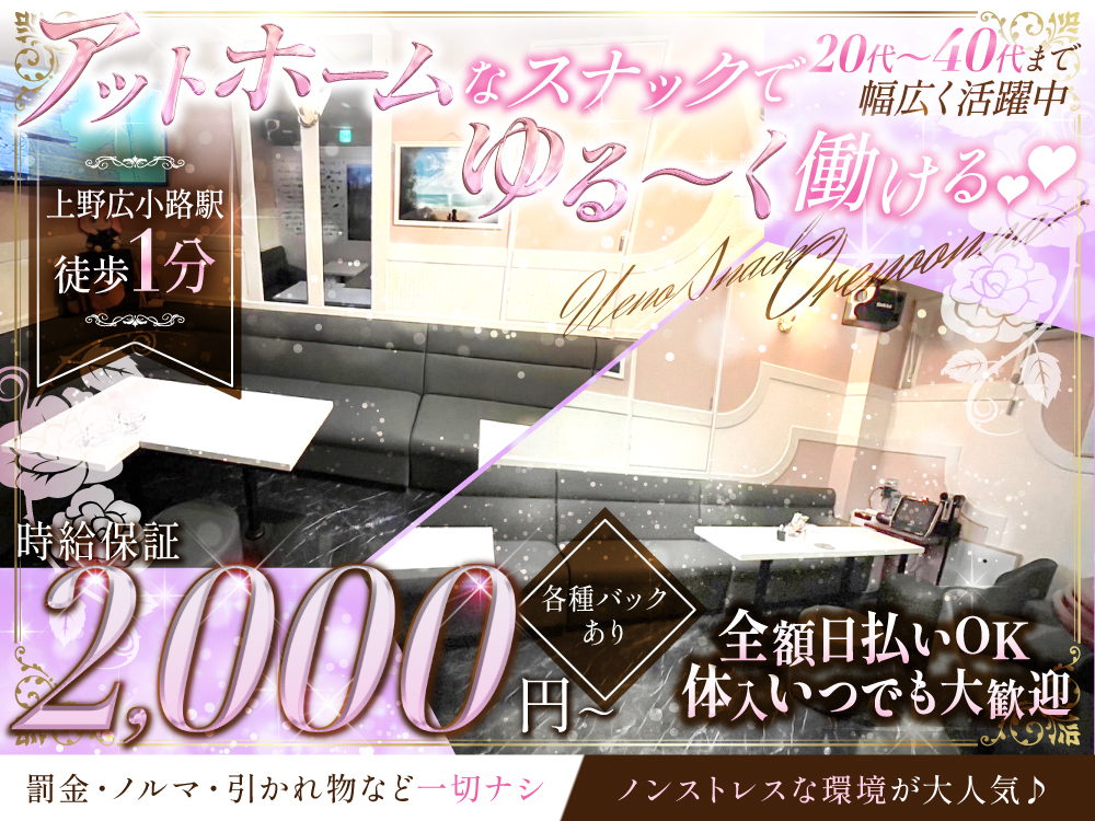 上野の人気スポット『俺の女』で新しいキャリアをスタート💫時給2,000円~で、日払い・週払い可能🌟おしゃれを楽しめる私服勤務OK、髪型・ピアス・ネイル自由✨Wワーク歓迎、自由シフト制で、未経験者大歓迎、経験者優遇あり💪ドリンク提供やフリートークなどの楽しい仕事内容🍹駅チカでアクセス良好◎随時昇給のチャンスあり⬆️体験入店も歓迎なので、気軽にチャレンジ可能💌!『俺の女』であなたの魅力を発揮しましょう🌟