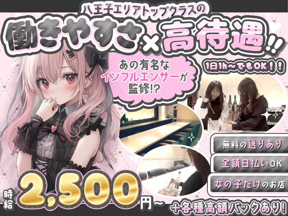 🌟👗 八王子の華やかな「ROOM~ルーム~」🎉素敵な衣装を無料でレンタルでき、時給2,500円スタートに加えて高額バックありで、あなたの頑張りをしっかり評価!日払い・週払い・月払いから選べて、急な出費も心配無用です👛✨初心者さん大歓迎で、すぐに馴染めますよ🍸 さらに、髪色やアクセサリー自由、週1日からの柔軟なシフト制で、ライフスタイルに合わせて無理なく働けます🌈 そして、SNSで人気の女性店長がいて安心のサポート体制!友達との応募も歓迎です👯♀️ プロのヘアメイク、寮完備、安全な送りサービスもあり!応募お待ちしています💕