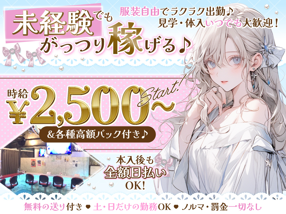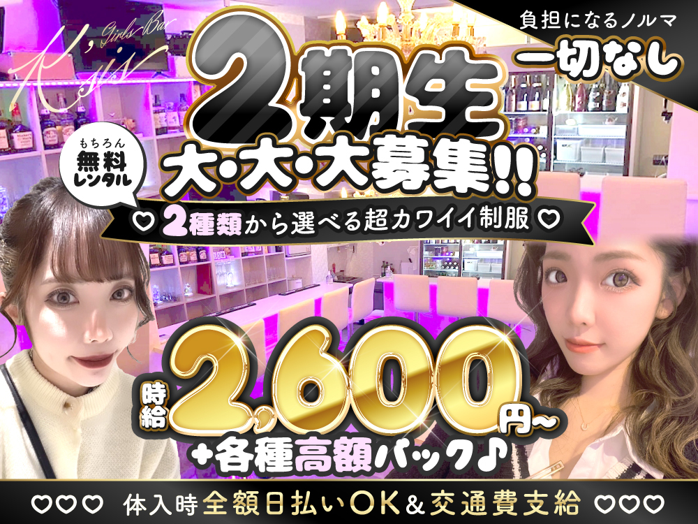 『Girls Bar K2~ケーツー~』で、あなたも輝くキャリアをスタート!未経験者歓迎、週1日・3時間からの柔軟なシフトでプライベートも充実🌟 時給2,500円スタート、バックありで高収入も夢じゃない!服装自由、全額日払いOKで、自分らしく働ける環境です💖 Wワークや友達同士の応募も大歓迎!ノルマやペナルティはなく、終電上がりも可能🚗 体験入店で気軽に始められるから、まずは応募してみてね💌✨ エルミタージュで新しい一歩を踏み出しましょう🎉💕