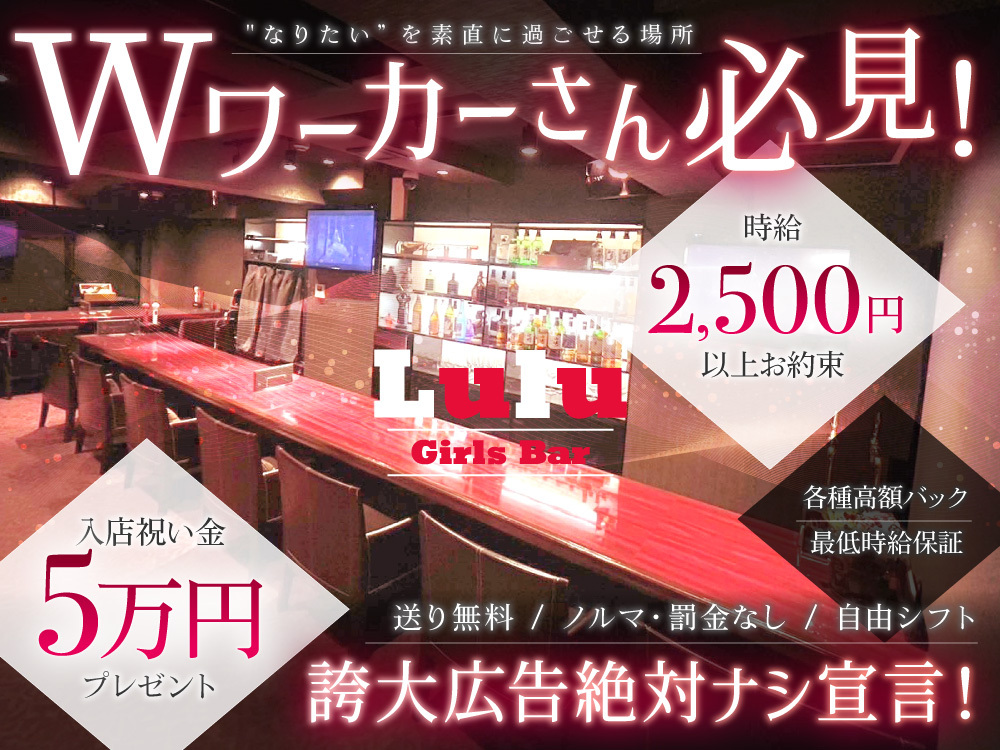 港区のガールズバー「Lulu ~ルールー~」では、現在入店祝い金5万円をプレゼント中🎁✨未経験でも時給2,500円スタートで、各種バックもあり高収入が期待できます💸もちろん全額日払いOKなので、働いたその日にお財布がパンパンに!ノルマや罰金は一切なしでストレスフリーな環境です🌟完全自由シフト制で週1日・3時間から勤務OK。私服での勤務も可能で、送りも無料なので安心して働けます🚗体験入店も随時受付中です!
