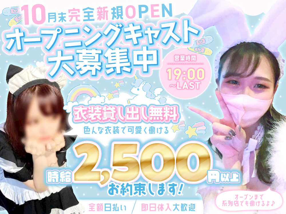 秋葉原の新店🐰BunnyPalace~バニーパレス~🐰で可愛いバニーガールとして働こう💕 新規オープンの特典✨: 時給2,500円~&ドリンクバック50%🥂シンプルなお仕事内容でシーシャ初心者も大歓迎💖日払い&交通費支給で安心🚃友達との応募やダブルワークも歓迎🌼天引きなし🚫オープニングスタッフとして特別待遇で一緒にお店を盛り上げよう🌟
