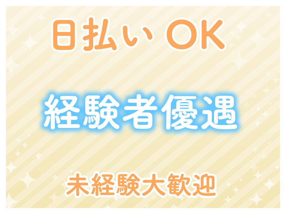 エリアTOPクラスの高時給&高待遇のお店です✨ ✨各種高額バック付き ✨未経験者さん大歓迎 ✨経験者さん優遇 ✨Wワーク、学生、OL、主婦、フリーター大歓迎 ✨完全フリーシフト制 ✨週1日、1日3h〜OK ✨終電上がり、遅番OK ✨お友達同士の応募大歓迎 ✨お酒飲めなくてもOK ✨ノルマ無し ✨髪型、髪色、ネイル、ピアス自由 ✨履歴書不要 ✨即日体入OK ✨