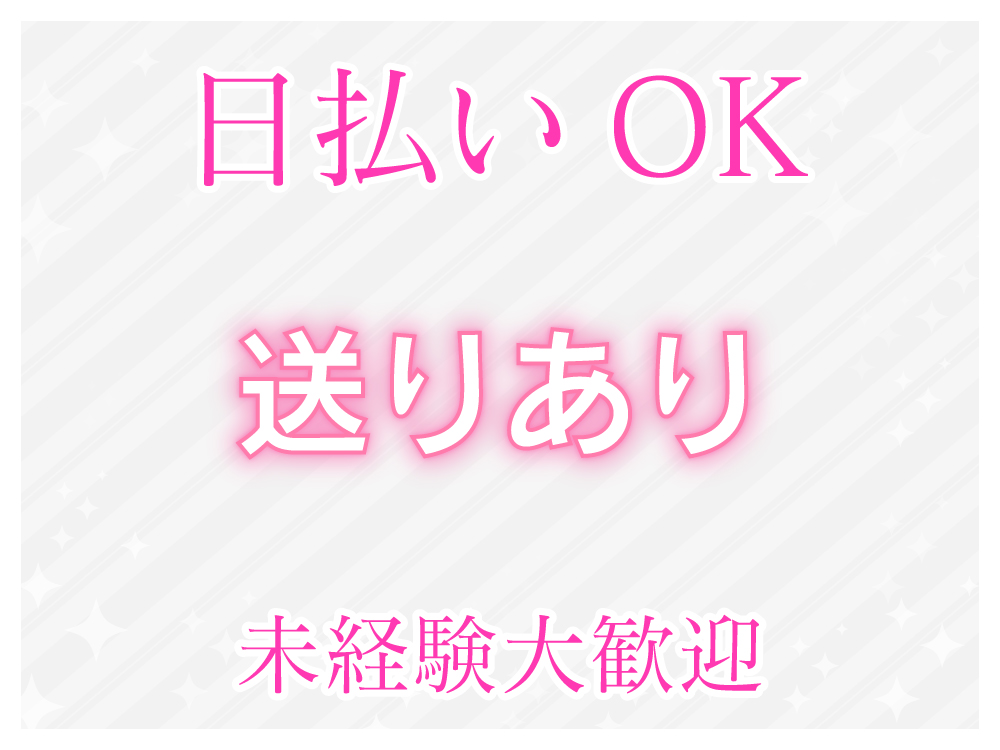 ❤️未経験の方も大歓迎! ⭐️経験者の方は優遇あり! ❤️学生・OL・フリーター・Wワークの方大歓迎! ⭐️お酒が飲めなくてもOK! ❤️お友達同士のご応募も大歓迎! ⭐️全額日払いOK ❤️終電あがりOK ⭐️3h以内の勤務OK ❤️髪型、髪色、ネイル、ピアス自由 ⭐️履歴書不要 ❤️完全フリーシフト制 ⭐️即日体入OK