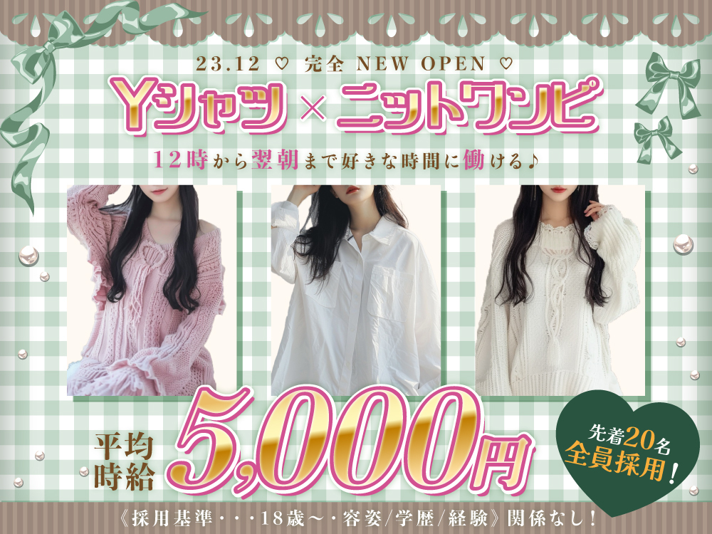 🎀10月に新規オープンした「Cafe&Bar Y.T.K」では、オープニング1期生を大募集しています💖✨キャストはまだ誰も在籍していないので、みんな一緒にスタートできるのが魅力的です🎶💕ニットコンセプトの衣装はレンタルでき、スニーカーやデニムもOKだから、カジュアルな雰囲気で働けます👟💜さらに、体入時給5000円以上と高待遇❗未経験でも大歓迎で、今ならほぼ100%採用されるチャンスですよ🎉ぜひ、今のうちにご応募くださいね💕
