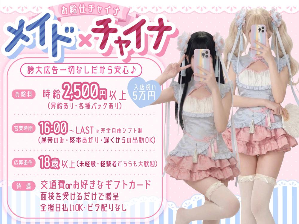 新規メンバーを募集中ですᕱ⑅ᕱ今だけの特典が盛りだくさん😲期間限定特典👉時給4000円保証🎀入店祝い金10万円🎀ノルマ・罰金なし🎀 みんな同じスタートラインなので上下関係や派閥は一切ありません!体験入店の前に店内見学をしてみるだけでもOK!注目POINT✅誇大広告は一切なし♪未経験でも時給4000円以上スタート💰💭ドリンクバックはもちろんのことたくさんのバックも完備しています🎉時給とバックを合わせればこんなに!?ってくらい稼げること間違いなし♪制服写真の通り露出無しの圧倒的可愛さの祭服を着てお給仕出来ます♡