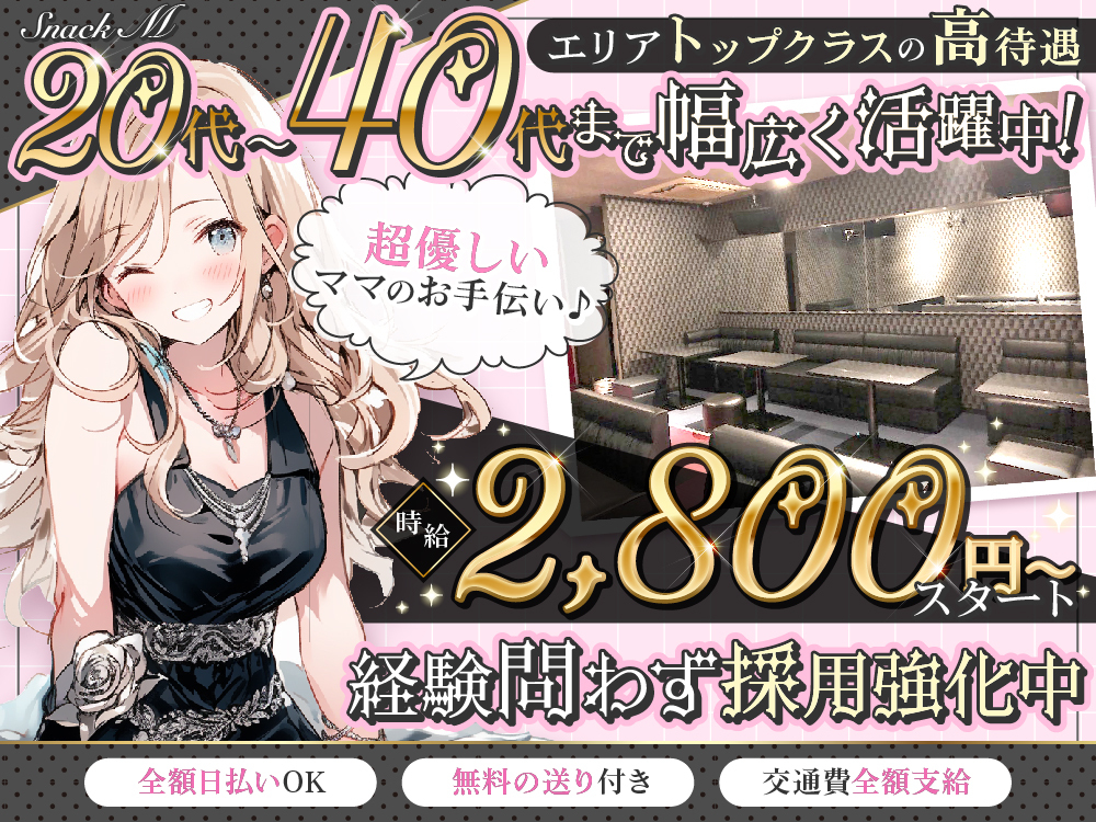 💖スナックM~エム~💖新メンバー大募集😈 最高時給2,800円以上 🌟未経験OK!日払い・月払いOK!ドレス無料レンタル 👗時給カットや罰金なし 💰 ノルマ、罰金なし 🚫 シフト自由制 📅 全額日払いOK 💴 送りあり 🚗✨ 魅力的な待遇 ✨ バック率最大50% 💵 ⏰ 未経験、Wワーカー大歓迎 👭 ビラ配り、客引き行為一切なし 🙅♀️ 経験者優遇 🌟終電上がりOK 🚃 土曜営業 📅 友達と応募OK 👫