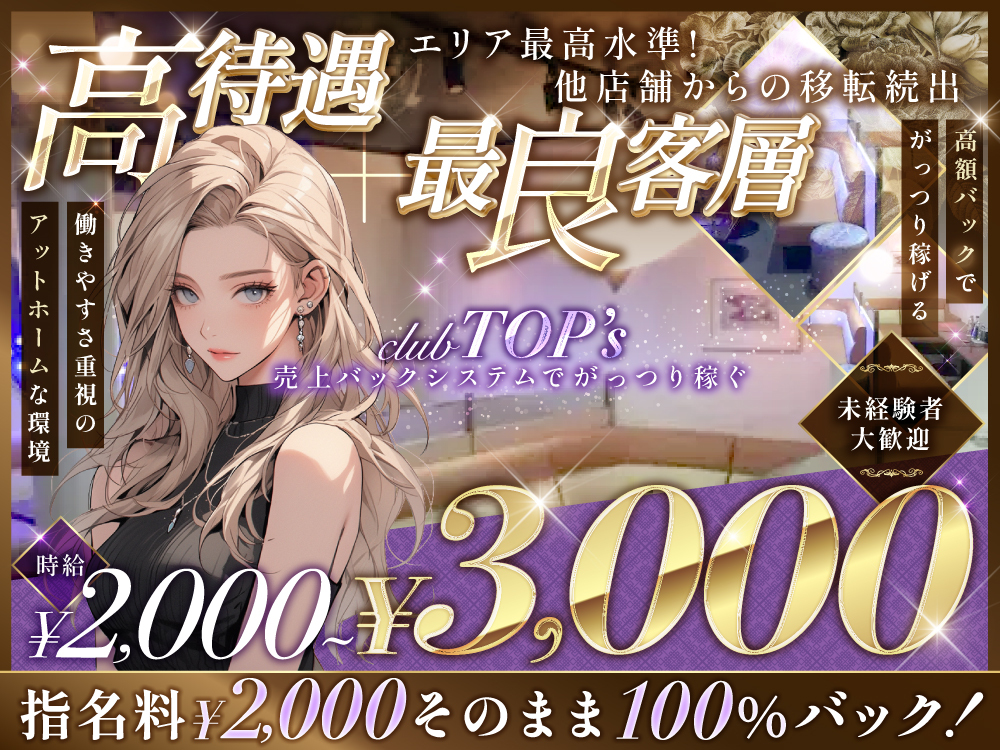 🌟茂原の「CLUB Top's〜クラブトップス〜」で、あなたらしく働きませんか?✨ 時給は2000円〜3000円、全額日払いで急な出費も安心💰👍 お仕事は、お客様とのフリートークやドリンク提供だけで、他の業務はスタッフが完全サポート🍹 特典満載で働きやすさ◎:ドレス無料レンタル👗未経験者・経験者大歓迎🎉ノルマや強制同伴なし🚫自由シフト制📅髪型・アクセ自由🌟送りサービスあり🚗ノンアル勤務OK🍹 友達との応募も歓迎💕